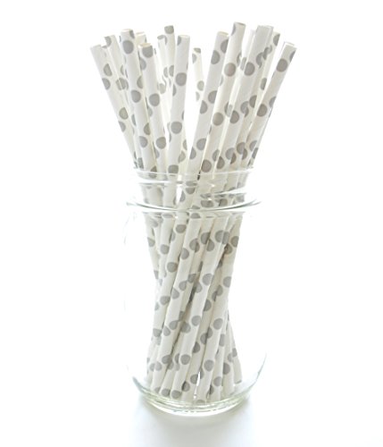 -. Title : Silver Drinking Straws, Paper Striped Straws, Wedding Drink Stirrers, Bubble Straws, 25 Pack - Silver Polka Dot Straws