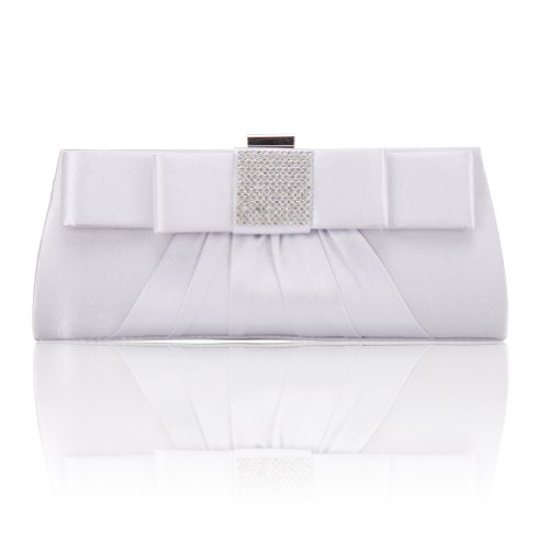 This pleated satin flap clutch features a sleek design and flapover construction with pleated detail.It has a secure top snap closure, and it opens to reveal a slim, lined interior with a slide pocket perfect for stashing your keys in, plus just enough room for your ID, credit card, cash, cell phone, powder compact, and lipstick. It's available in 4 colors and can be carried, and it comes with 2 concealable matched strap and a silver chain for use as a shoulder bag or crossbody bag.
