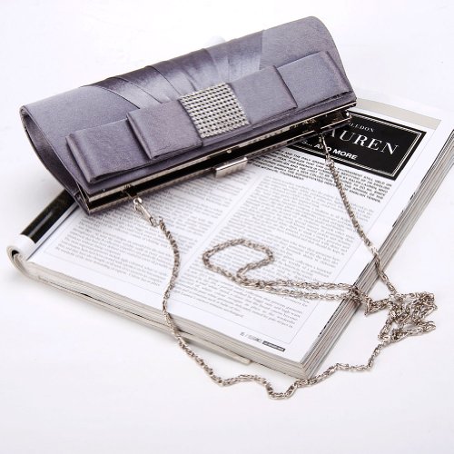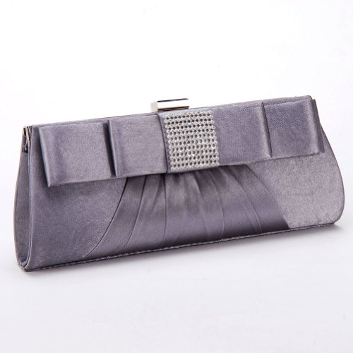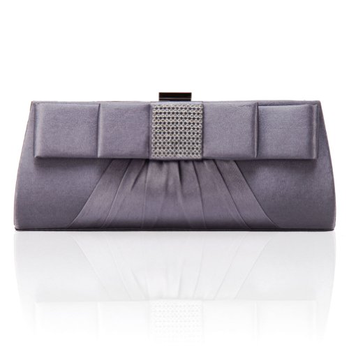 Damara Womens Front Pleated Crystahl Clutch Evening Bag, Grey