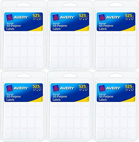 Avery Removable Rectangular Labels (6737) 0.5 X 0.75 Inches, White, 525 Count (Pack of 6) Total 3150 Labels