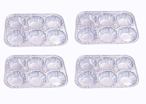 Set of 4 Muffin Pans, Aluminum Foil Disposable Muffin Pans, 6 Cavity Compartments