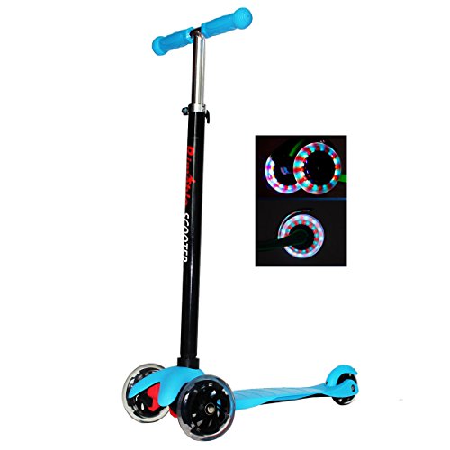 Title : Rimable Kids 3 Wheels Adjustable Height Mini Kick Scooter with LED Light Up Wheels (BLUE)