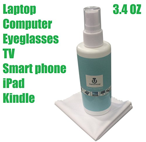 Title : Screen Cleaning Kit - Cleaner is Best For Laptop, Eyeglasses, TV, iPhone, iPad, Kindle, Touch Screens - 1 Cleaning Spray 3.4 OZ 1 Microfiber Polishing Cloth - Streak Free