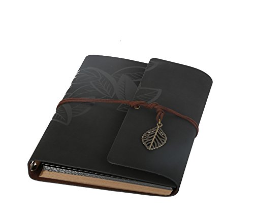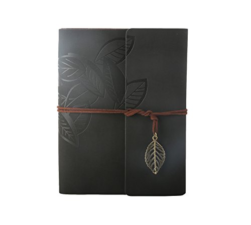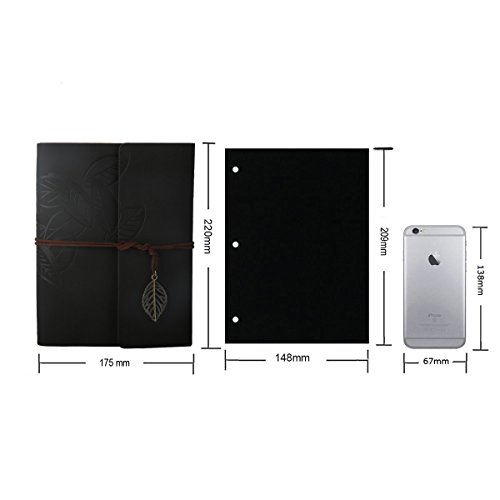 Leather Retro Scrapbook Vintage Photo Album Family Memory Love Book Guestbook Leaf Pattern DIY Anniversary Wedding Scrapbook Album 60 Pages A5 Size(Black)