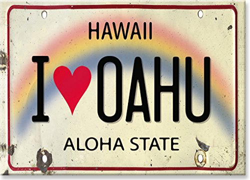 Hawaiian Art Collectible Refrigerator Magnet - I Love Oahu License Plate
