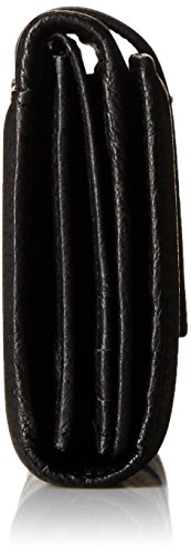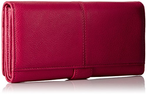 -. Feature : Leather tri-fold wallet / Button snap closure / Fully lined with 4 bill slots, 12 card slots, 2 compartments, and 1 zip pocket