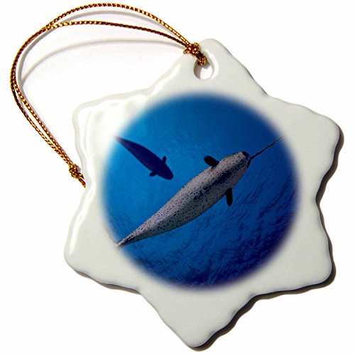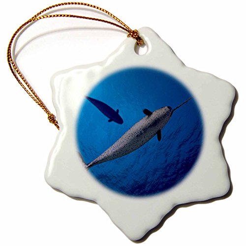 3dRose orn_46392_1 Narwhal Lives Mainly in High Arctic Often Amongst The Pack Ice and Generally Offshore Snowflake Decorative Hanging Ornament, Porcelain, 3-Inch