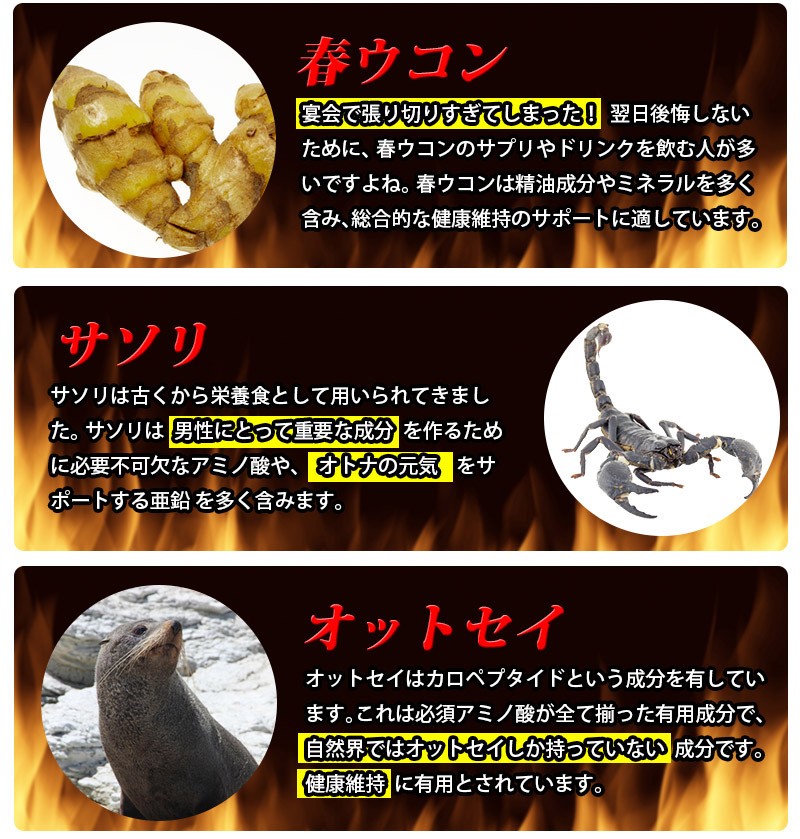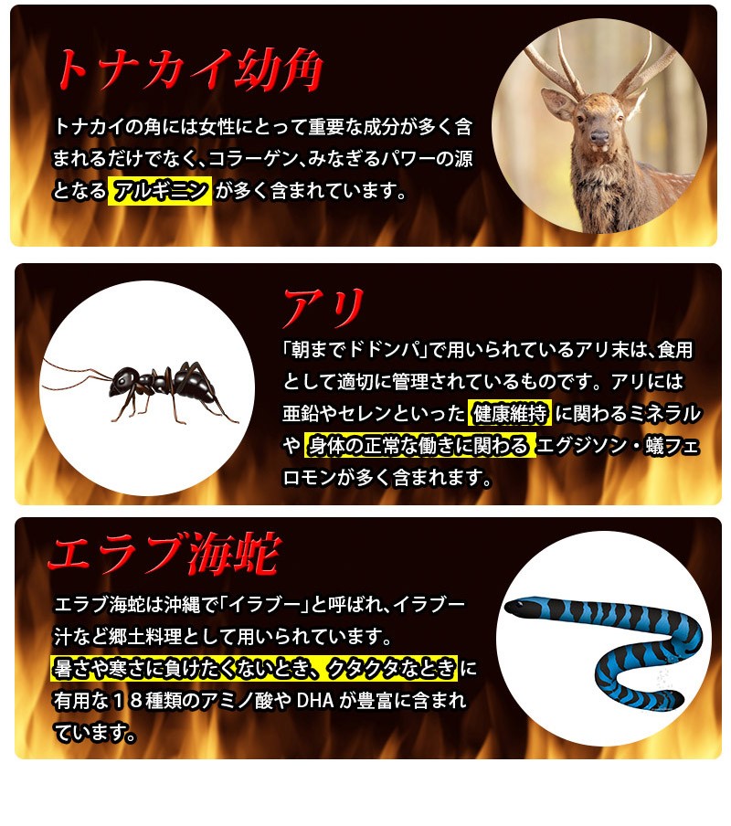 | .・* | 【お召し上がり方】1日3粒を目安にお水などでお召し上がりくだ さい。 【ご注意】 口食生活は、主食、主菜、副菜を基本に食事 のバランスを。 口体質に合わない方はご使用をお控えくださ い。 口通院・入院中・薬を服用中・妊娠中の方は医師にご相談 の上お召し上がりください。 口小児の手の届かない所に保管し てください。口自然食品の為、外観上多少の違いや粒に斑点が 見える場合がございますが品質に何ら問題ございません。 ロ名称 マカ末含有加工食品 口原材料名 ;マカ粉末、 春ウコン末、赤マー 広ジ粉末、すっぽん粉末、アリ泰、オ、セイ粉末、サソリ粉末、 豚睾丸エキス, トナカイ幻角末,エラブ海蛇粉末,/セルロース、ビタミンB2, ステアリン酸Ca、微粒酸化ケイ素 口内容量27g(1粒300mg×90粒) 口保 存方法直射日光高温多湿を避け冷暗所に保存 口賞味期限:ラベル下部に記載 製造より2年 □区分 健康食品 □製造国 日本 □販売者 株式会社若杉エンタープライズ 岐阜県岐阜市富沢町38-8 |