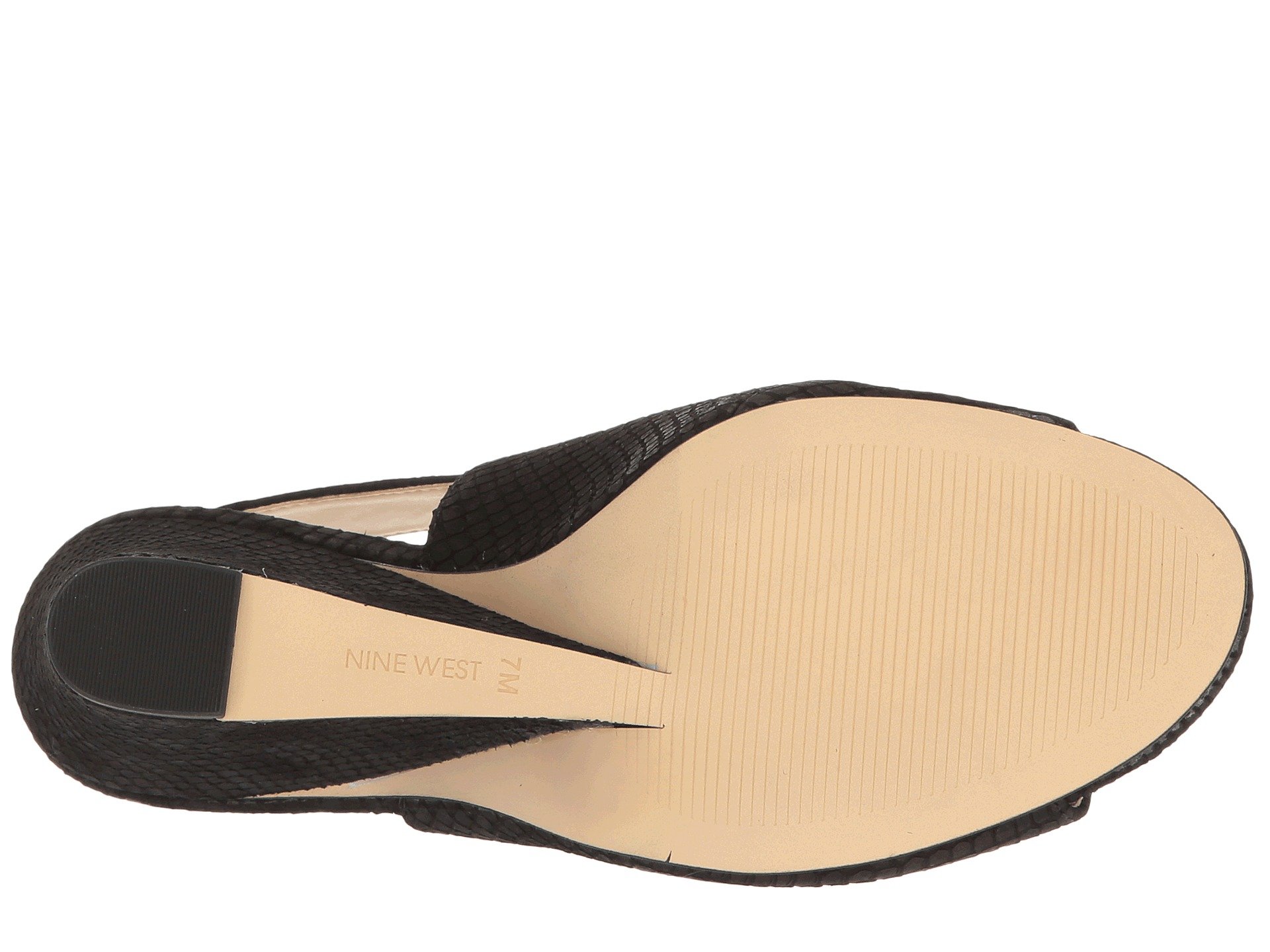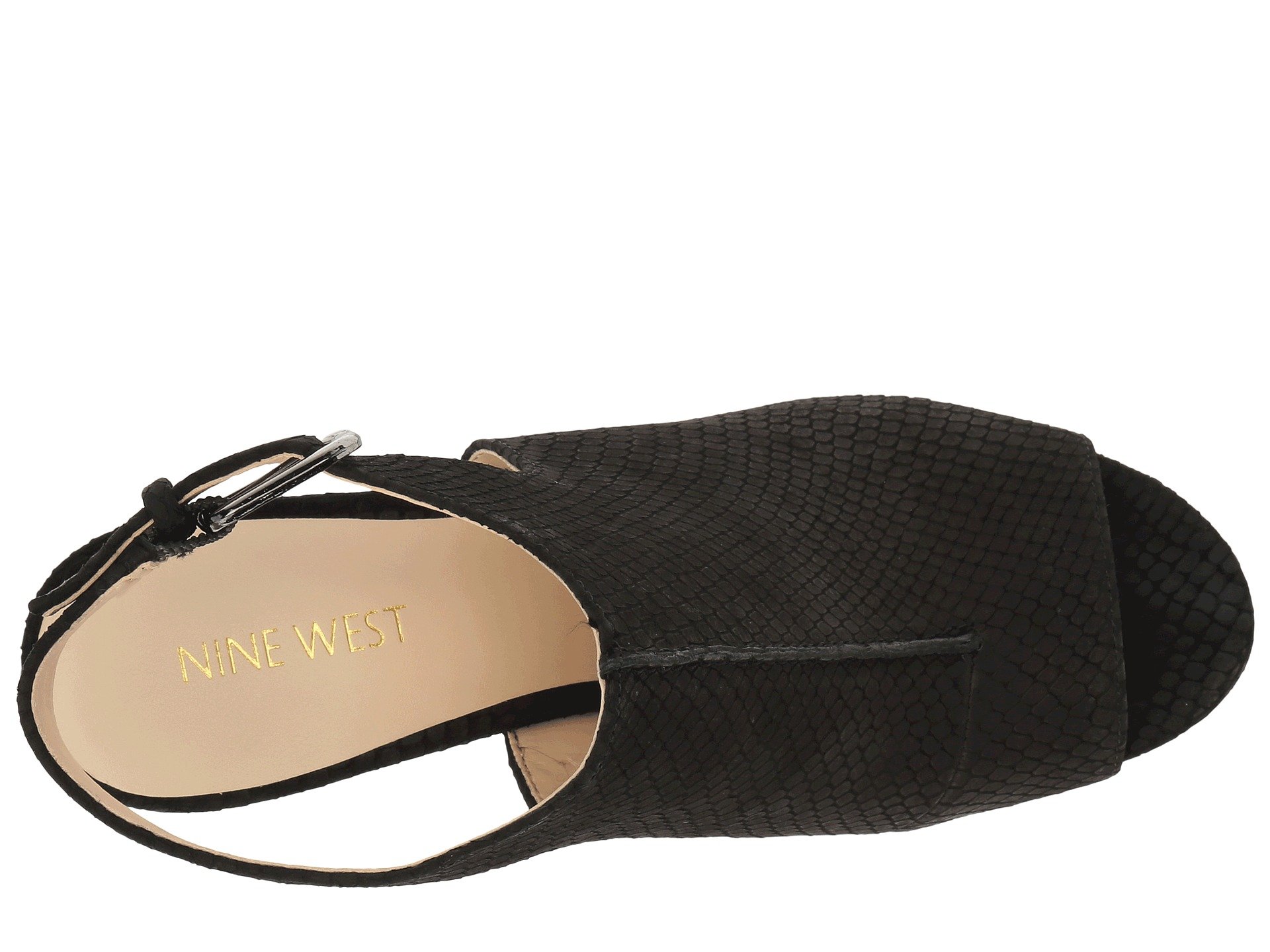 | Product Information SKU: #8850175Flaunt your downtown chic look with the Nine West? Gorana wedge sandal.Nubuck leather upper.Ankle strap with buckle closure.Open toe.Man-made lining.Lightly padded footbed.Man-made outsole.Imported.Product measurements were taken using size 7, width M. Please note that measurements may vary by size.Weight of footwear is based on a single item, not a pair.Measurements: Heel Height: 3 in Weight: 9 oz |