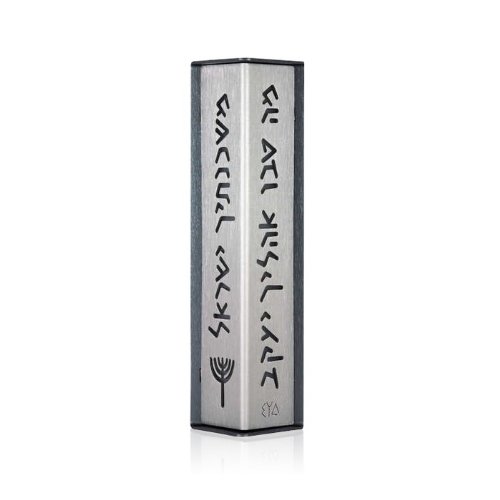 - This stylish take on the traditional mezuzah has the first line of the Hebrew prayer 'Ma Tovu' cutout. Created from brushed aluminum, this mezuzah has a trendy aesthetic. Its' beautiful words will add meaning to your doorway.