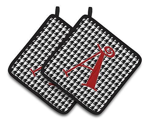 Caroline's Treasures Letter A Monogram - black White Houndstooth Pair of Pot Holders CJ1035-APTHD, 7.5HX7.5W, Multicolor