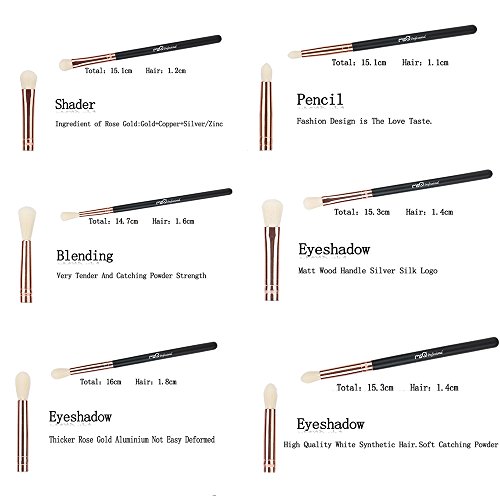 - PRO EYE MAKEUP BRUSHES SET: Including eyeshadow brushes, blending brushes, eyeliner brush, eyebrow brush and concealer brushes. Different shapes and sizes of the bristles give you a variety of eye look