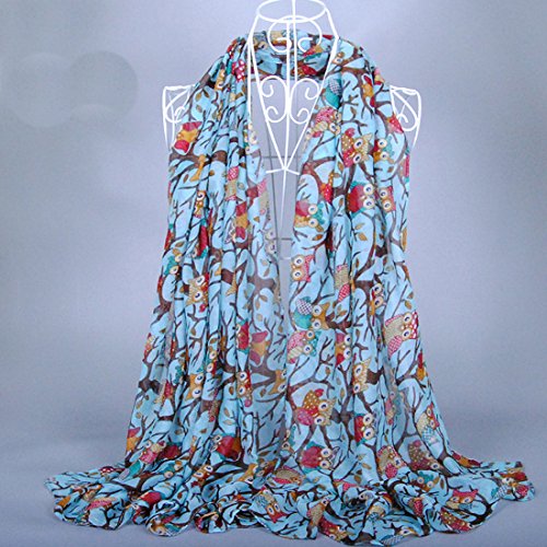 Title : Neal LINK Women's Scarf Lightweight Cartoon Owl Bird Sheer Branch Shawl Wrap