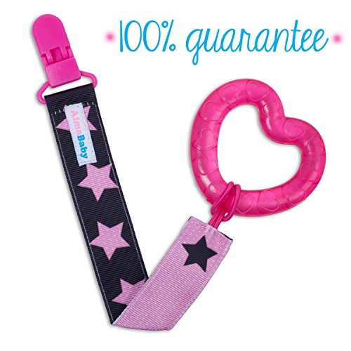-. Title : AlmaBaby Universal Safety Pacifier Clip Holders, Girls - Pink Stars 3 Pack - First Year Gumdrop Clip. No Metal Parts