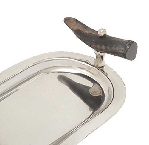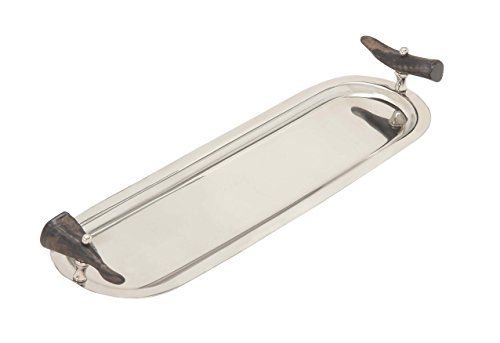 Deco 79 98050 Stunning And Sleek Steel Tray With Horn Handles