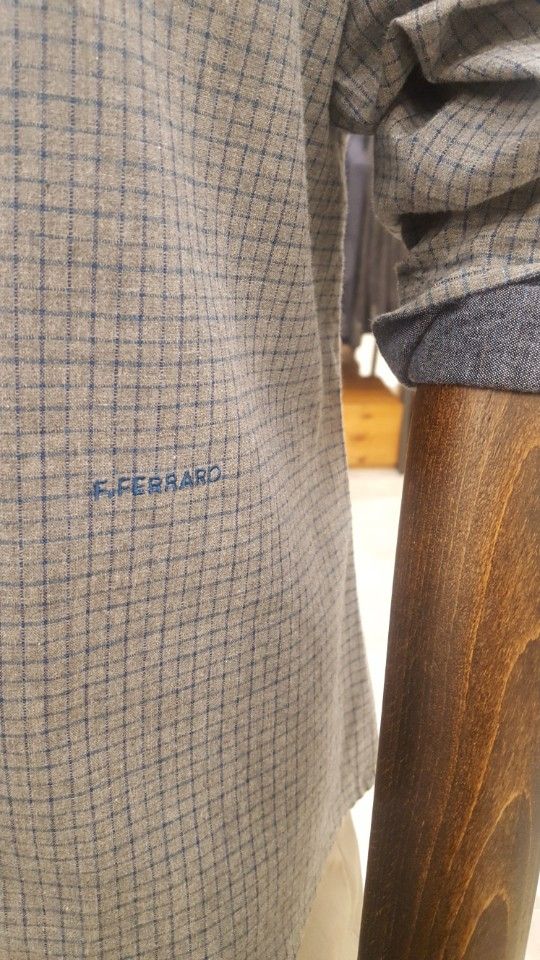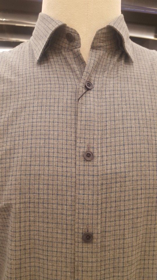 그레이 칼라의 멀티한 체크 무늬가 포인트인 베이직 셔츠로