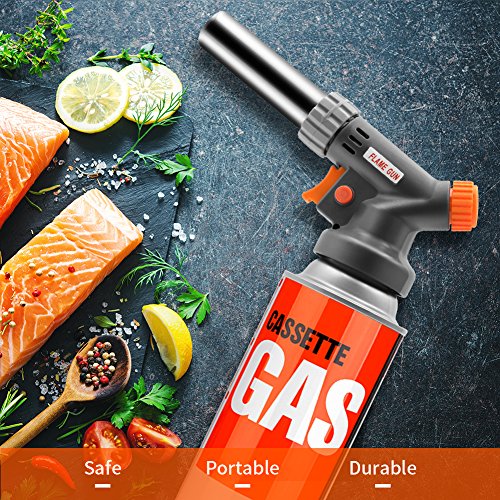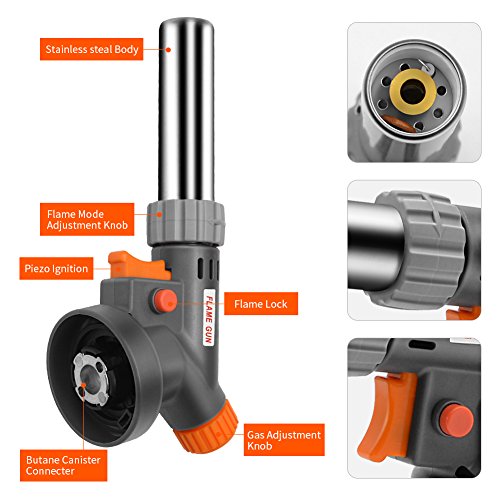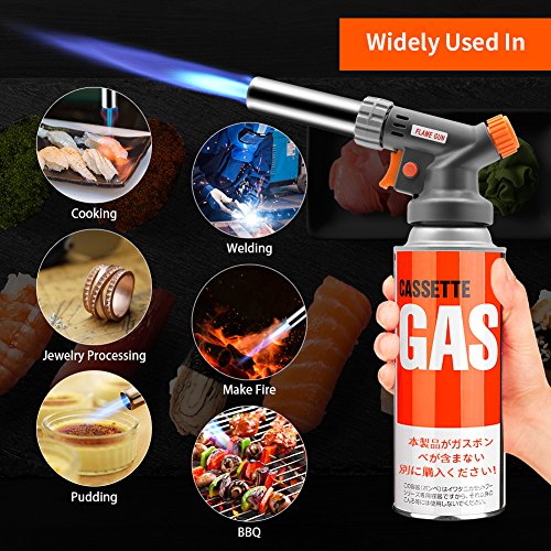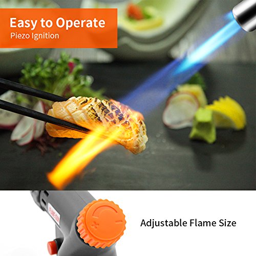 2400℉: Flame temperature of blow torch up to 2400℉. It is hot enough to cooking even melting gold and silver for industrial use. With gas adjustment knob, you adjust the size of the flame.