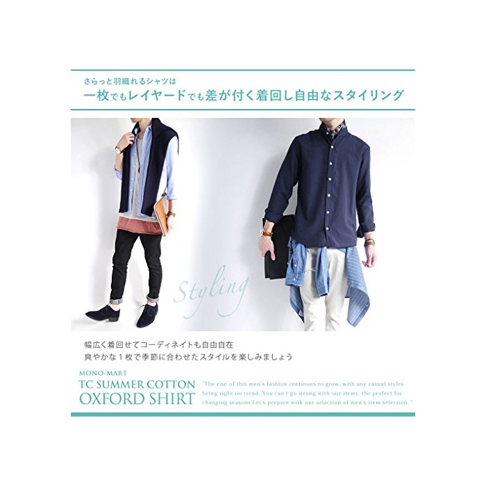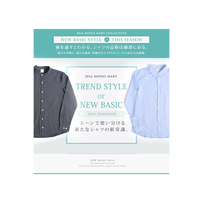 (모노마트) MONO-MART 옥스포드 셔츠 밴드 컬러 긴 소매 착용감 비지니스 디자이너스 상쾌하 쾌적 맨즈