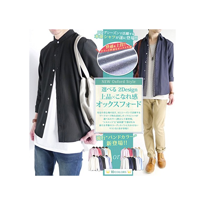 원본상품명: (モノマト) MONO-MART オックスフォド シャツ バンドカラ 長袖 着心地 ビジネス 快適 メンズ
