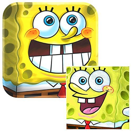 -. Title : Sponge Bob Square Pants Lunch Napkins & Plates Party Kit for 8 by Amscan