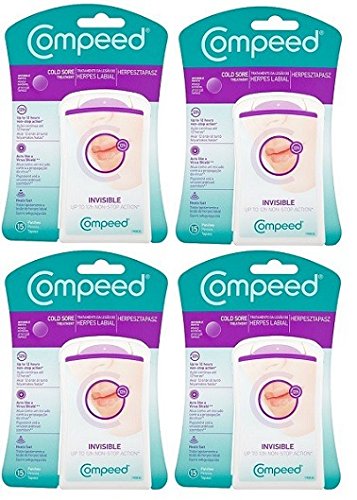 Product Description Description: Compeed Cold Sore Treatment Invisible Patches works by sealing any ruptured blisters. The patches effectively prevent the spread of the virus, providing healing benefits at each stage of the cold sore outbreak. This is a discreet and effective way to treat cold sores. The patch instantly soothes itching and burning sensations at affected area. The product prevents scab formation for noticeably faster healing. Usage Directions: Do not apply any sort of cream before using the patch With use of mirror inside, peel off blue foil on mirror Make-up or lipstick can be applied over the patch post application Leave the patch until it detaches itself from the skin Side Effects and Precautions: These cold sore invisible patches do not show any side effects However, allergic reactions on skin may be seen due to adhesive which vanish soon as you take the patch off In case of prolonged reactions, consult doctor Ingredient: Ultra-thin Hydrocolloid €"075 Each Pack Contains: 15 (1.5cm x 1.5cm) X Compeed Cold Sore Treatment Invisible Patches Storage: Store the unused patches in same package Keep the product in cool and dry placeFeature
