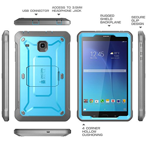 Galaxy Tab E 8.0 Case, SUPCASE Unicorn Beetle PRO Series Full-body Hybrid Protective Case with Screen Protector for Samsung Galaxy Tab E 8.0 Dual Layer Design+Impact Resistant Bumper Compatibility: Compatible with Samsung Galaxy Tab E 8.0 2016 release model SM-T350, allowing full access to touchscreen, camera, buttons, and ports. NOT FIT ANY OTHER Samsung TABLETS. Materials: High grade polycarbonate + thermoplastic polyurethane for shock absorption. Front cover with screen protector prevents scratches without compromising sensitivity. Design: Designed with both protection and looks in mind, SUPCASE Unicorn Beetle PRO Series Full-body Hybrid Case provides shock absorption and scratch prevention while maintaining a sporty profile. - Advanced Front Cover Design for Easy Installation - High Quality Screen Protector without compromising sensitivity - Advanced dual-layer (PC + TPU) design provides great impact and shock resistance and prevents accidental drop, bump, and shock - Port Cover keeps out debris and dust - Easy access to all features (buttons, camera, speaker, and ports) - Sporty profile and multiple color options What's in the package? 1x SUPCASE Unicorn Beetle PRO CaseFeature