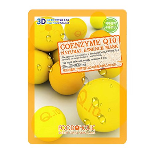 - Feature : 10 pcs FOODAHOLIC 3D Natural Pulp Face Mask Sheet + 1pcs Free NAEXY 2-Steps Double Effects New Facial Mask Sheet (Total 11pcs) Made in Korea / COENZYME Q10 ( For tight and supply moisture ) / CoenzymeQ10 Natural Essence Mask contains CoenzymeQ10 that prevents skin damages, smooth the skin and maintains the skin healthy and elastic. / Direction: 1. After washing face apply on mask. 2. 20~30 minutes later take off the mask and tap gently excess amount of essence onto the skin. / Made in Korea