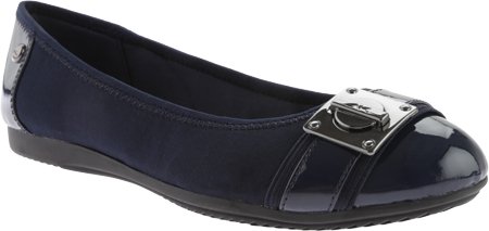 Slip-on wear. Contrasting cap toe and gold-tone decorative buckle. Fabric lining, padded insole. Man-made outsole. Imported.
