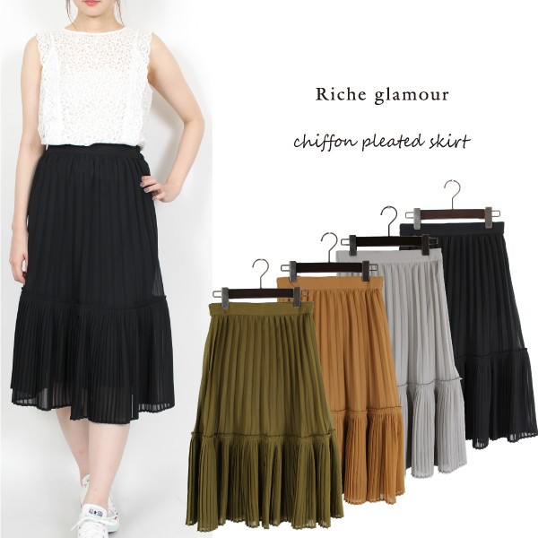 シフォンプリーツ切替スカート