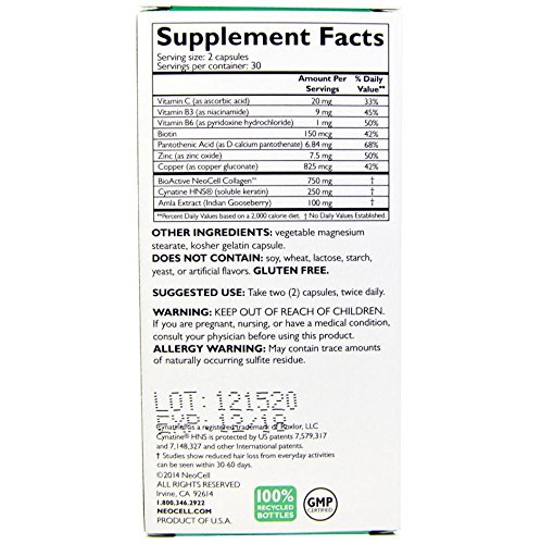 -. Title : Neocell Keratin Hair Volumizer Biotin Collagen Vitamin B6 60 Capsules