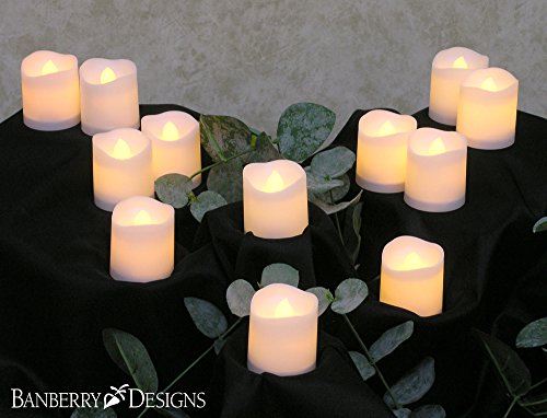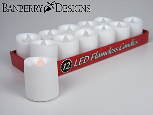 LED Lighted Flickering Flameless Candles - Banberry Designs - Box of 12 - Wedding Decorations - White Faux Candles - Flameless Candle Set - Centerpieces