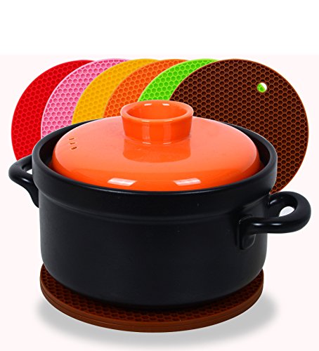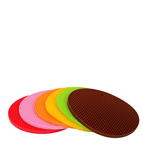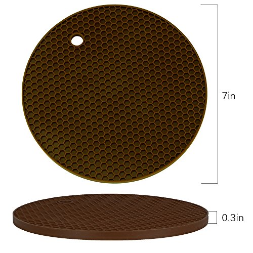 HsuiBhs Silicone Pot Holder 2 Pack, Circular Cup Insulation Mat, Flexible And durable, Heat Resistant HB-GJD/Round/Brown/2 Pcs