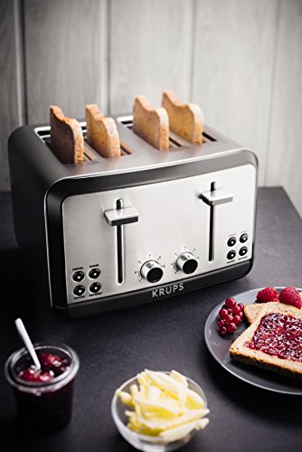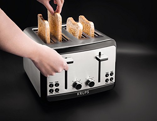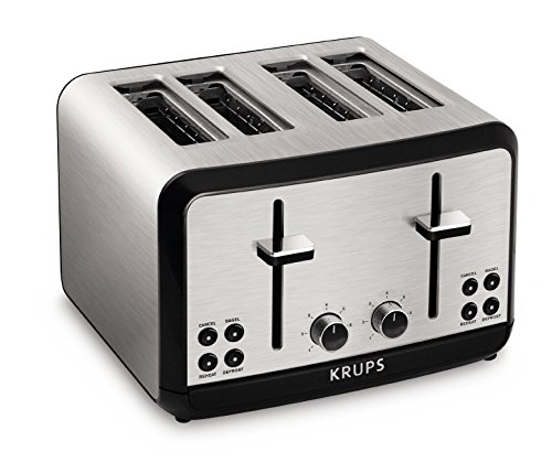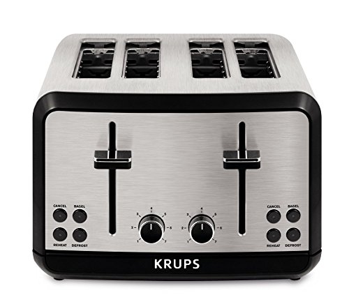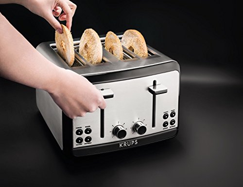 KRUPS KH3140 SAVOY Brushed Stainless Steel Toaster with Bagel Function and Wide Slots, 4-Slice, Silver