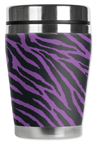 Mugzie Purple Zebra "Mini" Travel Mug with Insulated Wetsuit Cover, 12 oz, Black
