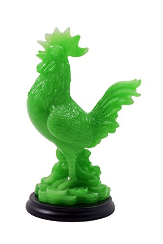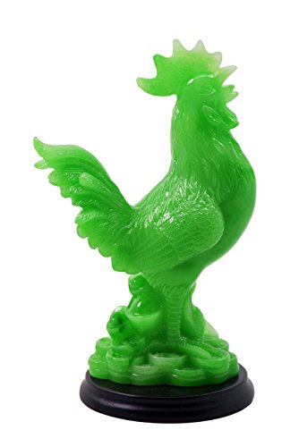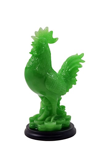 2017 Feng Shui year of Rooster 5.5" Green color Auspicious rooster Sitting on Treasure for Wealth Luck