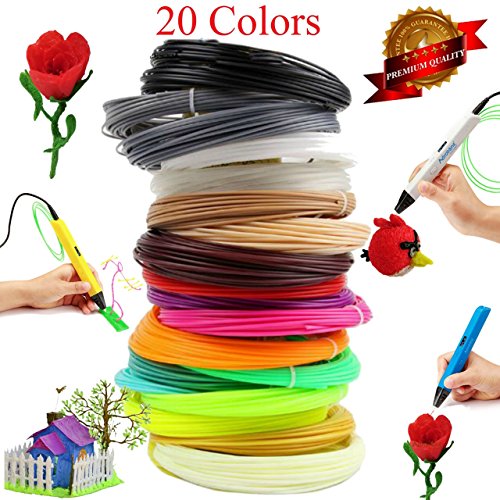 3D Printing Pen Filament Refills - 1.75mm ABS Plastic 328 Linear Feet Pack of 20 Different Colors 16.4 feet each, Included 2 Glow in the Dark. Each Color in a Separate Vacuum sealed pack for easy use