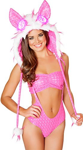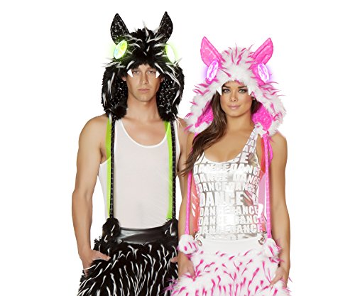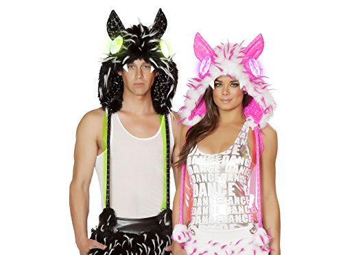 Studio : J. Valentine Costumes Publisher : J. Valentine Costumes Binding : Apparel Product Description Spiked white/hot pink faux fur light-up hood features an allover fur hood, hot pink galactic bat ears, light up led eyes, fur pom pom straps, and attached shoulder harness for easy on and off. 0