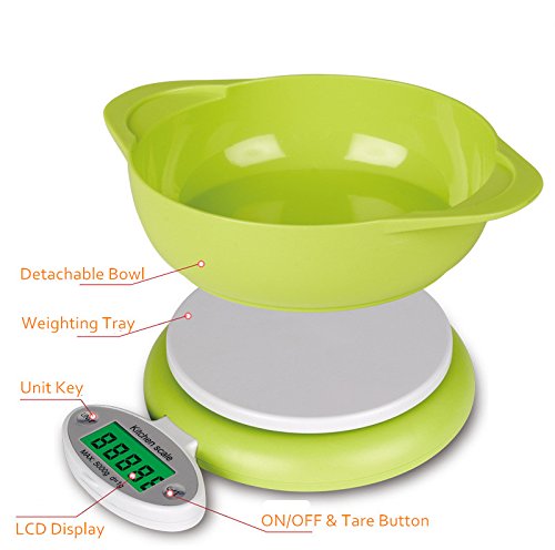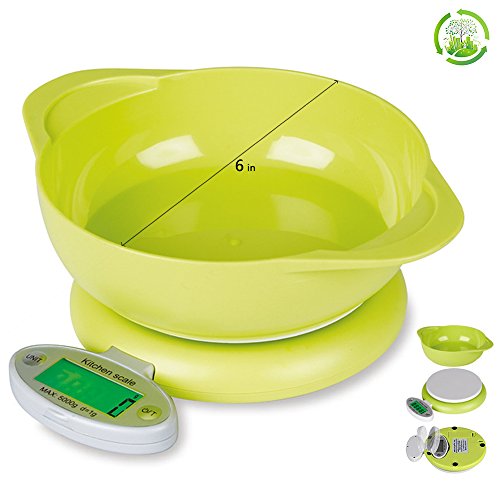Kitchen Scale Digital Precise Cooking Scale SendawTech 5Kg/1g Food Scale With Fold-able LCD Display (Liquid Bowl and Batteries Included)