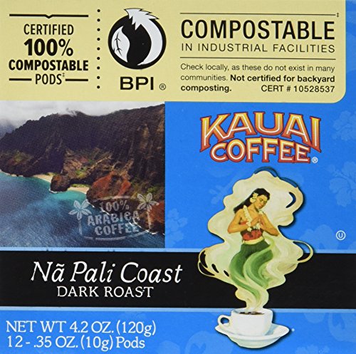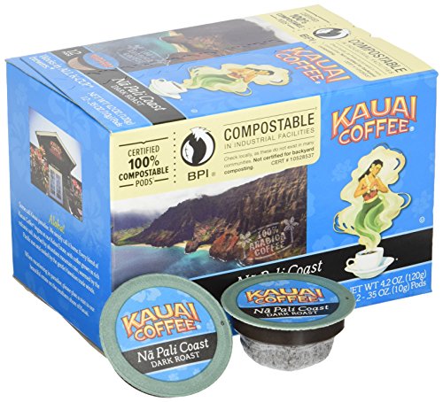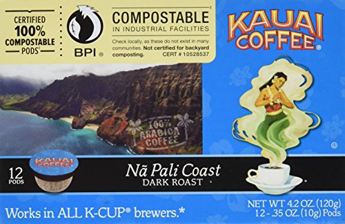 Kauai Coffee, Na Pali Coast Dark Roast, Compostable Single Serve Coffee Cups, 12 Count (Pack of 6)