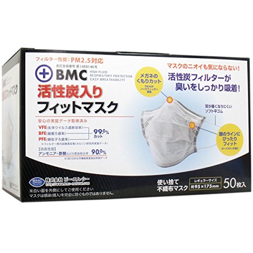・本品は有毒ガス、有害粉塵を防ぐ目的での使用はできません。 ・本品は使い切りタイプです。洗濯による再使用は出来ません。 ・万一、かゆみ、かぶれ等の症状があらわれた場合は使用を中止してください。 ・マスク以外の用途には使用しないでください。 ・乳幼児の手の届かないところで保管してください。 ・高温多湿な場所での保管は避けてください。 ・活性炭フィルターが気になる臭いを効果的に吸着。 ・アンモニア・酢酸などのガス減少消臭効果90%以上 ・ガードステッチ加工により、すき間なくフィット ・やわらかノーズフィッター採用で鼻の部分にピッタリフィット。 ・ちりや埃などのミクロ粒子を捕捉する四層構造。(超極細繊維フィルターを使用) ・メガネのくもりカット。 ・顔のラインにぴったりフィット。
