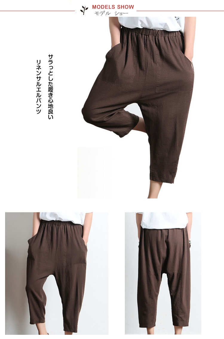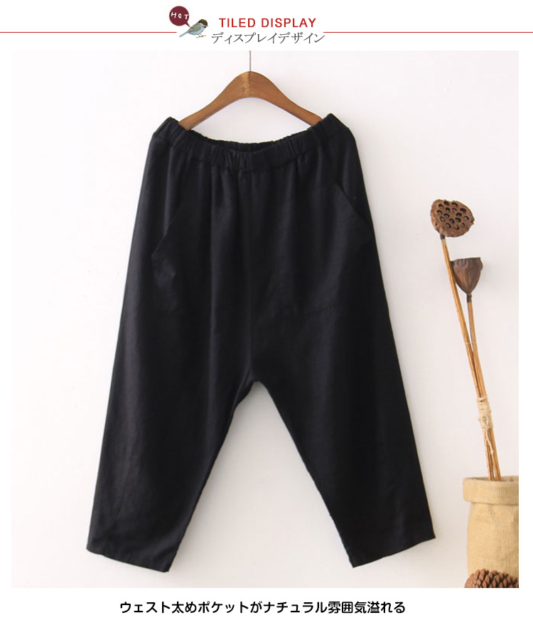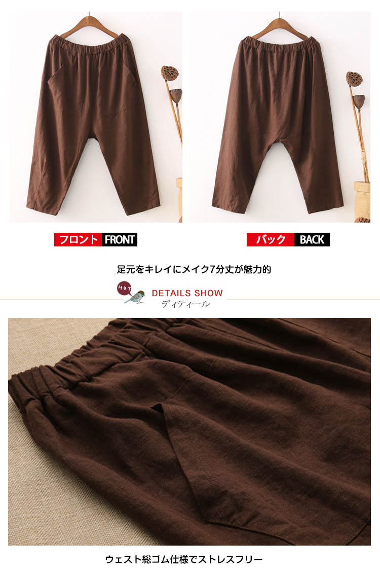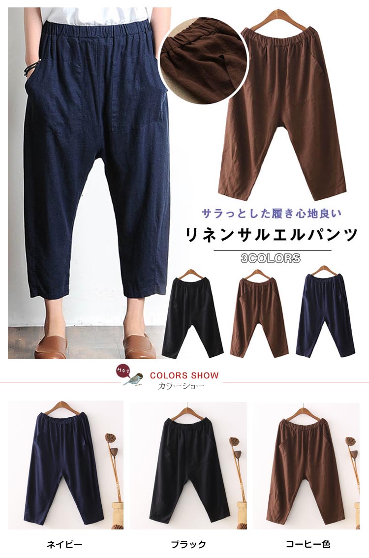 | サラっとした履き心地良いリネンサルエルパンツゆるシルエットが大人っぽいラフな着こなし◎ウェスト総ゴム仕様が窮屈感なし、リラックスタイムに最適ウェスト太めポケットがナチュラル雰囲気溢れる足元をキレイにメイク7分丈が魅力的 | |