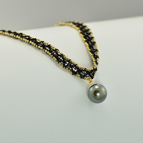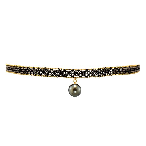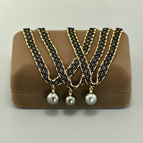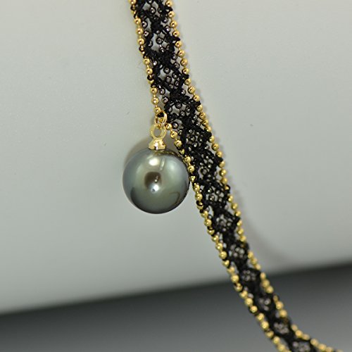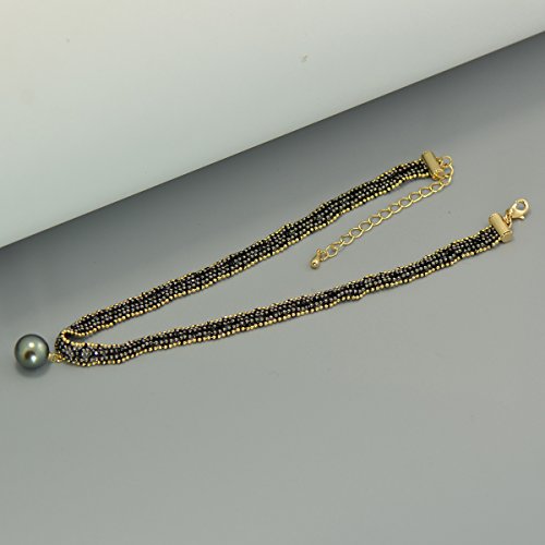 This elegant choker necklace is made by genuine tahitian black pearl and braided lace belt