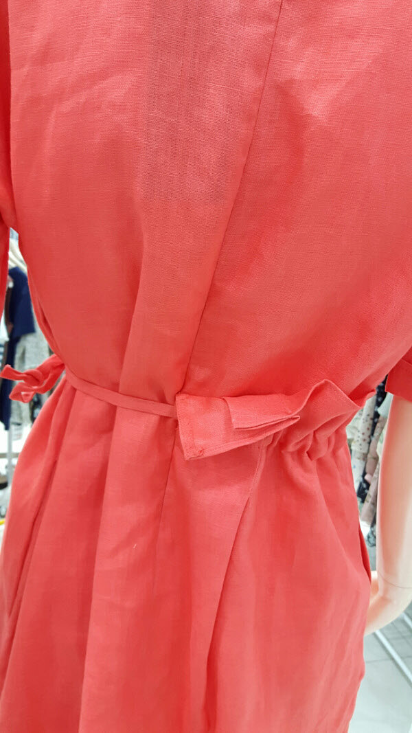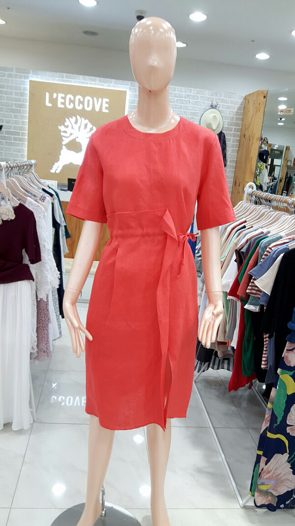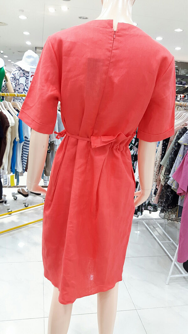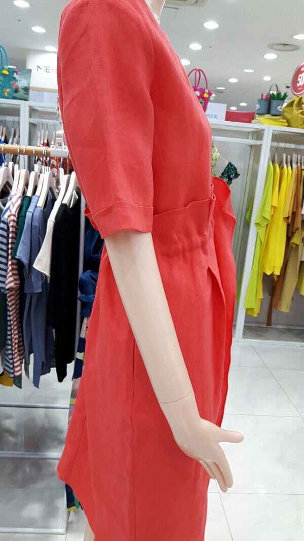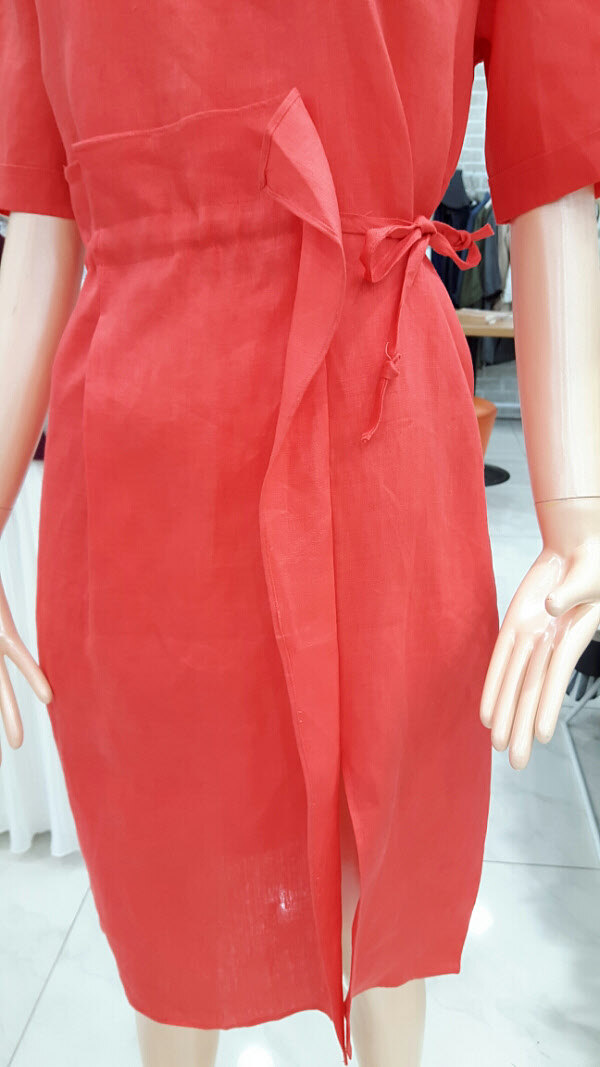 마소재의 깔끔한 정장원피스입니다허리선을 끈으로 묶을수있게 강조했으며 앞 터임이있어 여성스러움을 강조한 원피스입니다