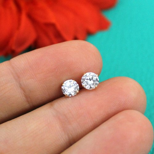 - Feature : These earrings are made of real solid 14k gold (available in white or yellow gold) and diamond-simulated cubic zirconia stones (cz), which shine and sparkle beautifully. / Click on the drop down menu to choose stone size. Posts are 8 mm long. / Earrings come with a little 14k gold push backs, a gift box and free shipping.