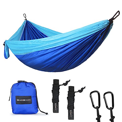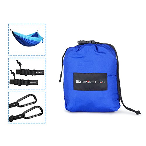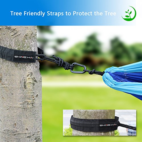 Support Up to 500 lbs: Super strong, SHINE HAI Camping Hammock could support up to 500 lbs, suitable for 2 persons. With the dimension of 118"(L) x 78"(W), there is still plenty of room when you lay down with your family or friend.