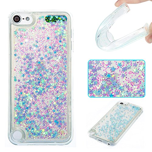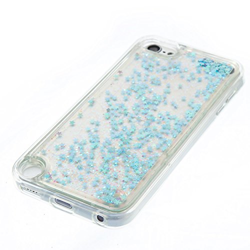 iPod Touch 6 Case,iPod Touch 5 Case,DAMONDY 3D Cute Bling Liquid Glitter Floating Quicksand Diamond Water Flowing Ultra Clear Soft TPU Case for Apple iPod touch 5 6th ONLY -sliver blue star