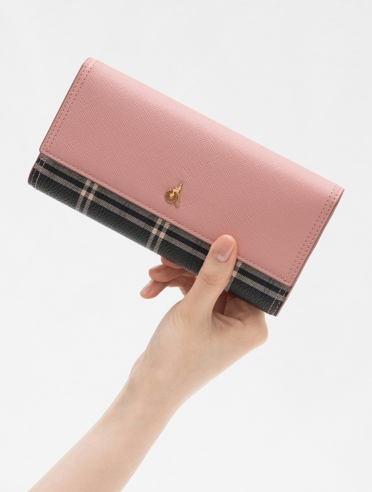 빈폴 고유의 브릿 패턴을 콤비 매치한 라인으로 더블 스티치와 블링한 참장식이 포인트인 장지갑입니다.