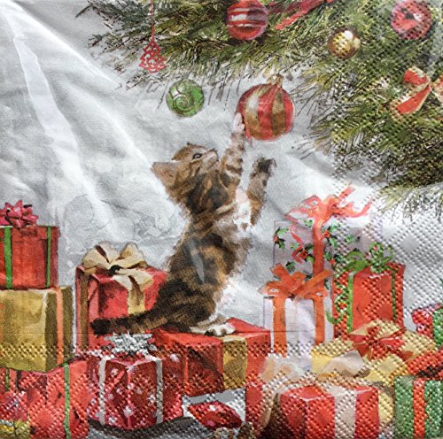 Nantucket Set of 40 Paper Luncheon Napkins, Christmas Ornament Playful Kitten