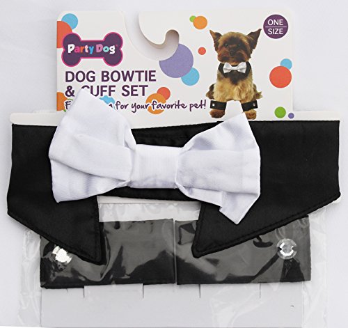 -. Title : Dog bowtie and cuff set formal dog costume dress up wedding