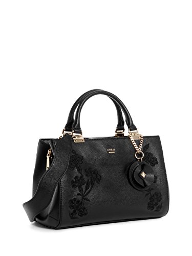 A floral embroidered design takes this faux-leather satchel to must-have status, complete with silver-tone hardware. Top zipper opens to logo-print lining with zip and multipurpose pockets. Divided compartments and removable circle charm.Feature